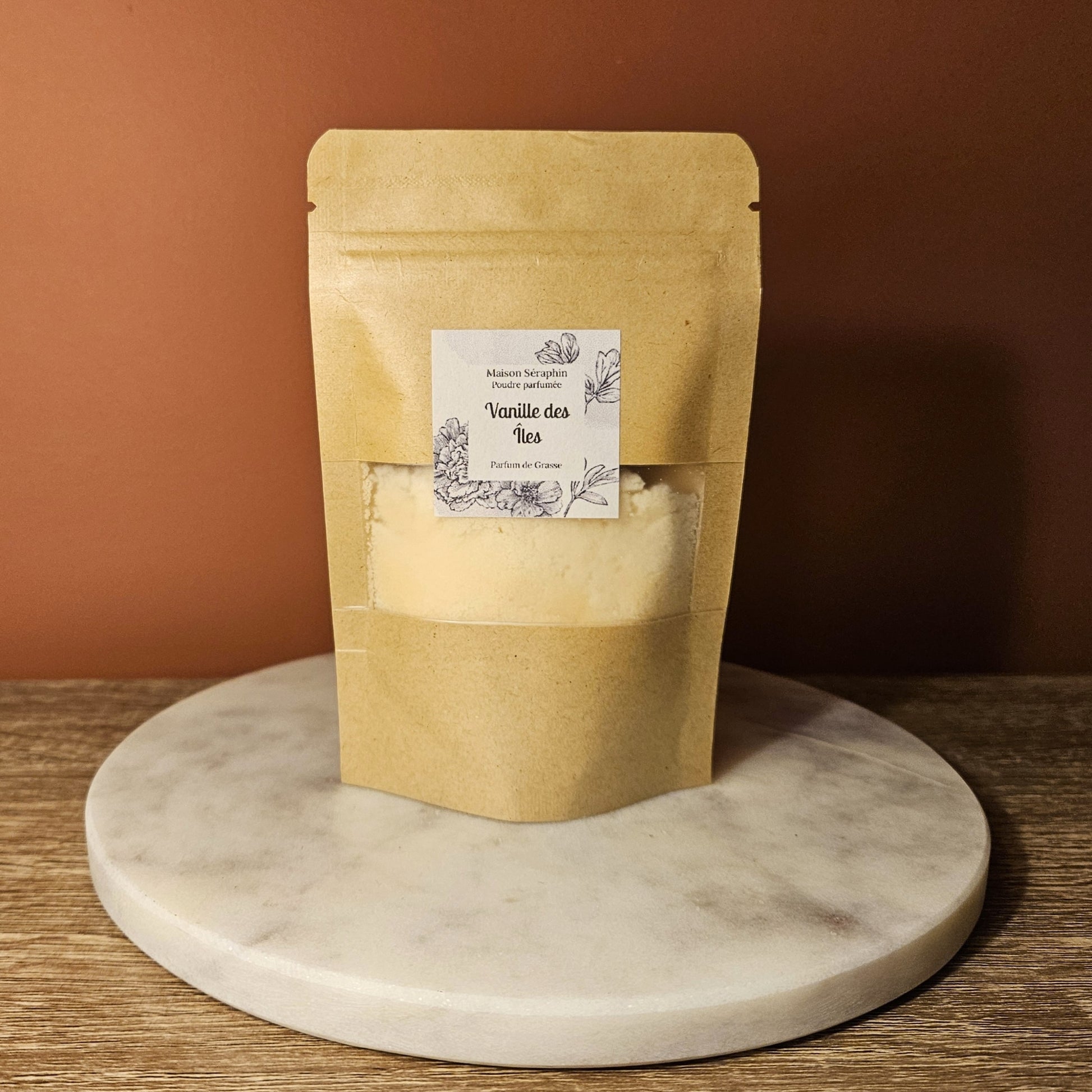 Cette poudre parfumée à base de bicarbonate de soude vous transportera dans les îles avec ses odeurs de gousses de vanille.